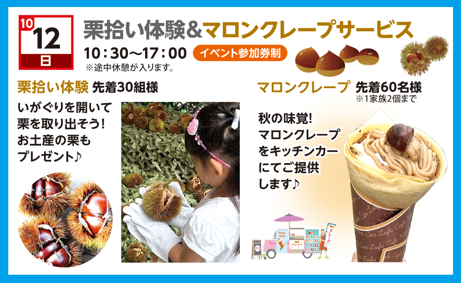 秋の味覚!マロンクレープをキッチンカーにてご提供します♪