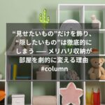 収納スペースは多ければ良いわけではありません。大切なのは、**「何をどこに収納するか」**を事前に考えること。