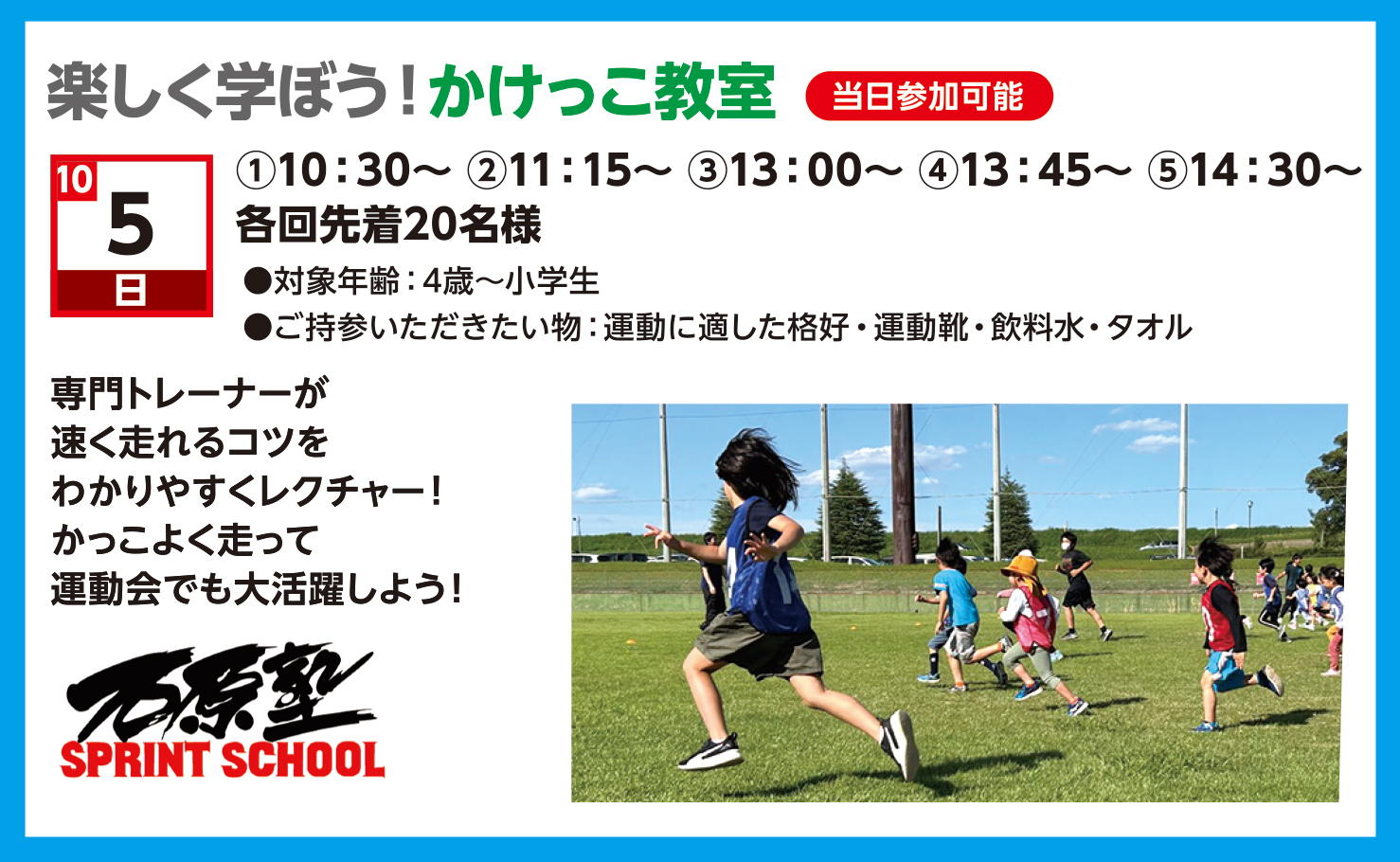 ※ご持参いただきたい物:運動に適した格好・運動靴・飲料水・タオル